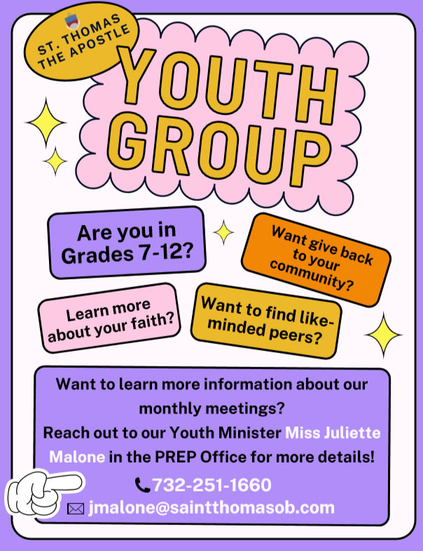 Join St. Thomas the Apostle Youth Group for monthly meetings filled with fun activities, food, music, community service projects, prayer, and an amazing opportunity to make new friends and connections!